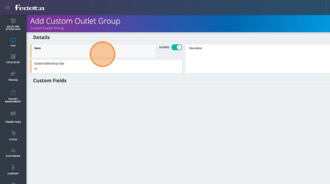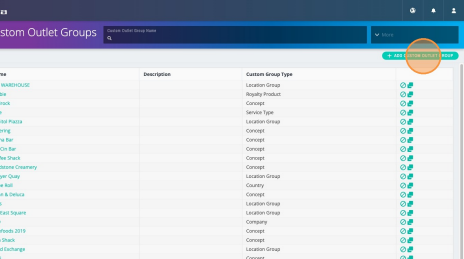 7. Click on the custom outlet group type that you created in Fedelta previously. Or you can add a new custom outlet group type by clicking the plus button at the bottom of the menu.