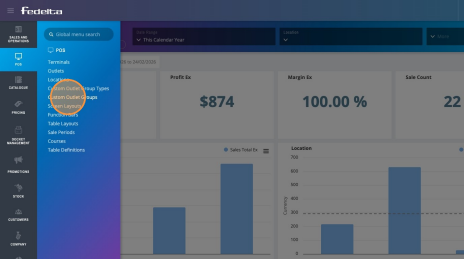 9. To assign two of our outlets into one custom outlet group, click on the POS menu.