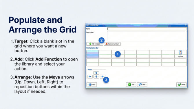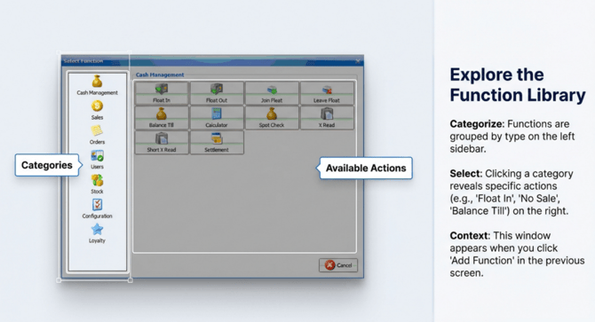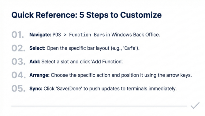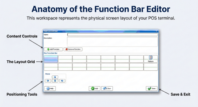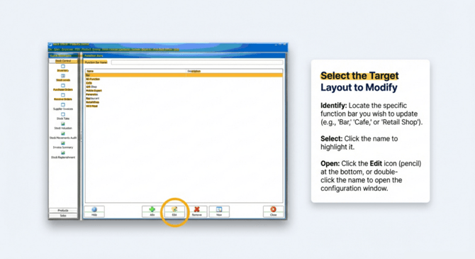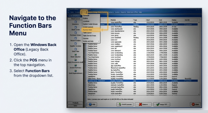 Function Bar Configuration This document outlines the steps to configure and customize function bars in the Fedelta Back Office.